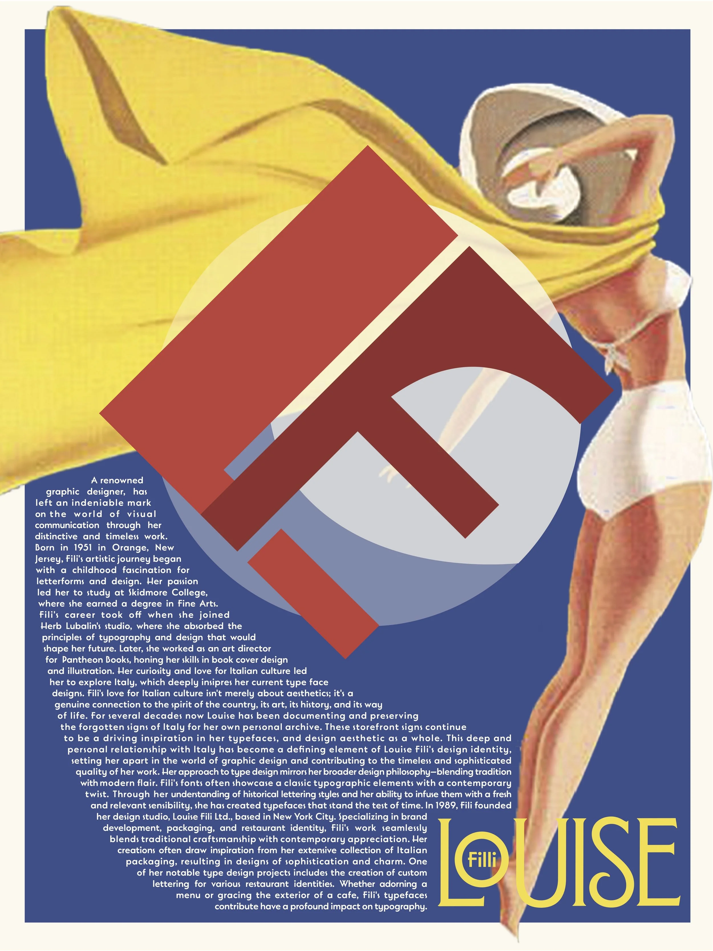 CopywritingCreation of a monogram utilizing font of a type designer. Incorporation of a biography and graphic elements. Experimentation of different elements in relation to the page.